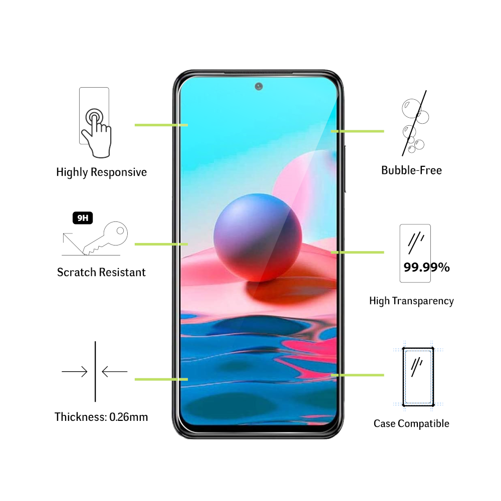 Pellicola in vetro temperato per Xiaomi Redmi Note 10S M2101K7B 10 M2101K7AG 5G M23K19G, questo vetrino protettivo trasparente protegge il tuo schermo da graffi, urti e cadute